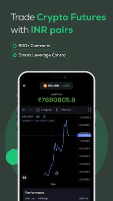 - Trade crypto futures & options effortlessly in USDT & INR