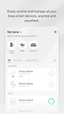 Kasa Smart lets you add, configure, monitor, and control your connected TP-LINK Smart Home devices from anywhere in the world. You can schedule your appliances to turn on or off according to your schedule, or set them to Away Mode to deter would-be burglars. And that’s just the beginning. Purchase a TP-LINK Smart Home device and download the app to get started today.