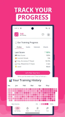 • Pro (subscription): Unlimited Ear Training, Full Vocal Training, Progress Tracking, Advanced Exercises